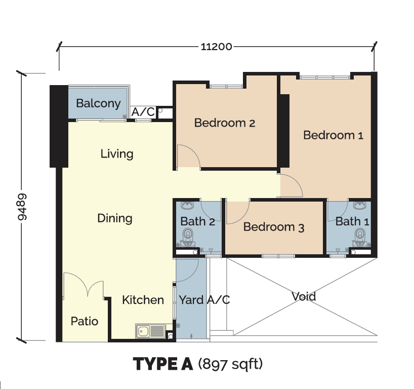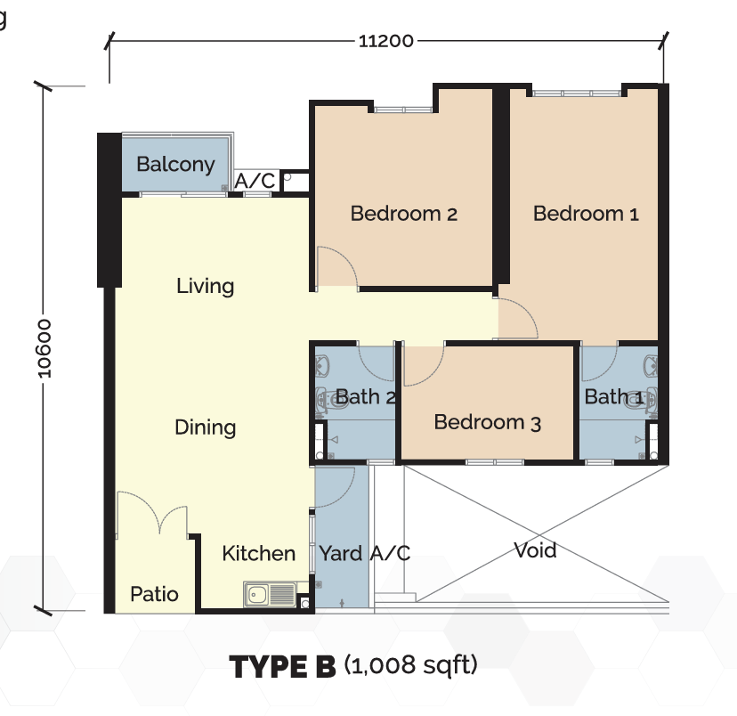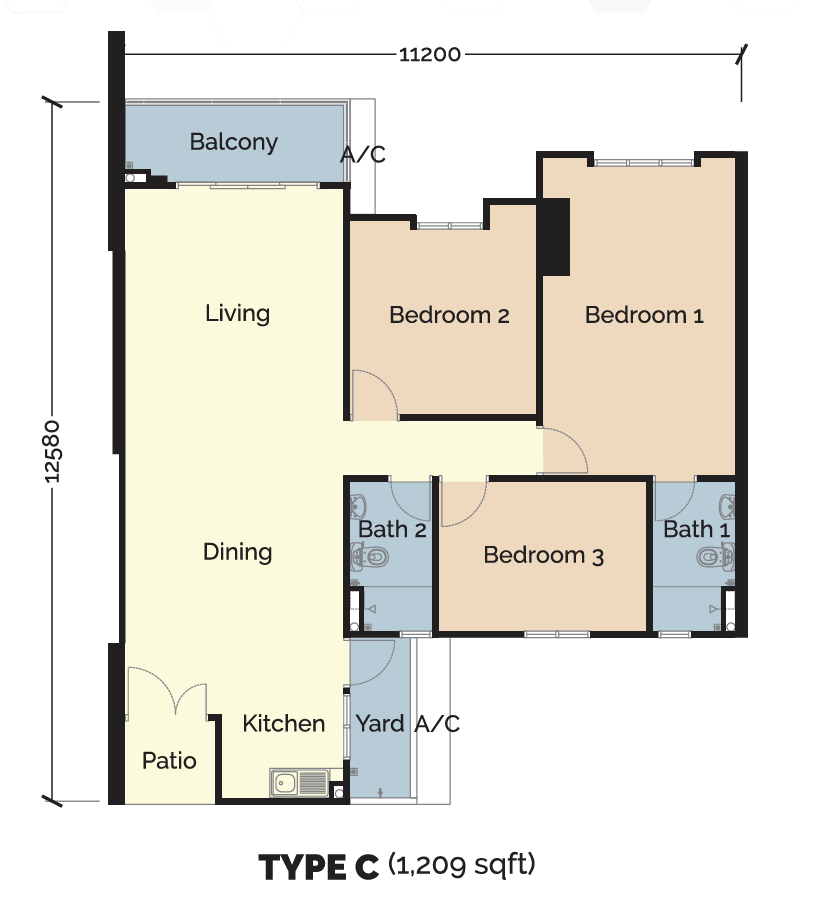| Unit Size | Type A - 897sf (2 Bedroom + 2 Bathroom) (2 Carpark) Type B -1008sf (3 Bedroom + 2 Bathroom) (2 carpark) Type C - 1209sf (3 Bedroom + 2 Bathroom) (2 Carpark) |