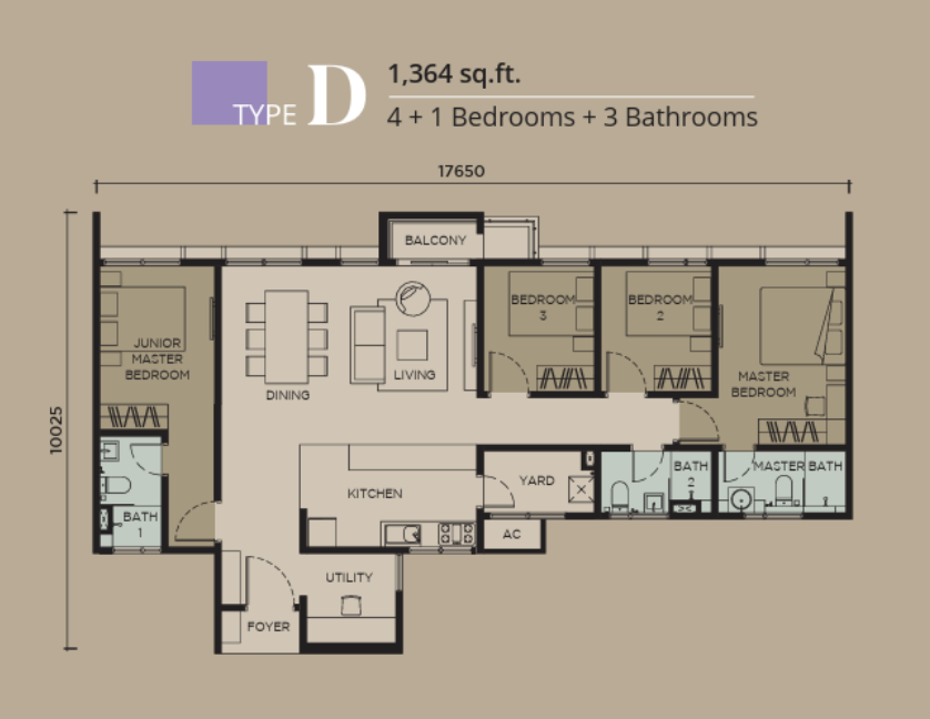 Type D - 1364sf (4 Bedroom + 3 Bathroom)